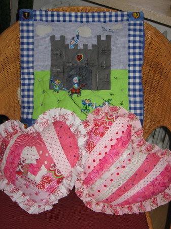 Ein paar Kissen gab es noch dazu. (Zwei Herzkissen, weil es auch zwei rosa Decken waren.)