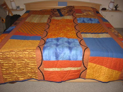 Sie dürfen bei der Planung Ihrer Decke – Farbauswahl, Patchworkmuster, Gestaltung - soviel mit einbringen, wie Sie wünschen. Sie können die Stoffe selbst besorgen, oder den Einkauf mir überlassen und nur die Farben, bzw. die Farbrichtung bestimmen. Oder Sie besorgen einen Teil der Stoffe, und ich suche die restlichen passend dazu aus. Ich verarbeite, was Sie wünschen: neue Patchwork- oder Kleidungstoffe, Dekostoffe, Kleidungstücke oder andere gebrauchte Textilien, eingefärbte Bettwäsche, ganz egal. Eine schöne Möglichkeit ist auch, alte Kleidungstücke als Erinnerungsstücke einzuarbeiten.