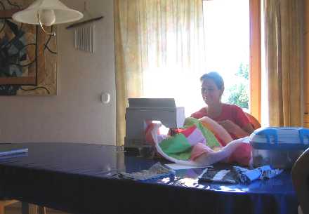 Es passiert nun mal ab und zu, dass eine Teilnehmerin etwas wichtiges vergisst mitzubringen. Da die Kurse in meiner Wohnung statt finden, kann ich meistens mit dem Bestand meiner Nähwerkstatt aushelfen, z.B. mit Nadeln, Garn, Vlieseline usw. So muss niemand die kostbare Kurszeit für unvorhergesehene Klein-Einkäufe dieser Art opfern. Oftmals gibt mein großer Stofffundus auch irgend etwas her, um einer Näharbeit den letzten Pfiff zu geben. Gerade bei Kinderkleidung und bei Patchwork-Arbeiten kommt das häufig vor.